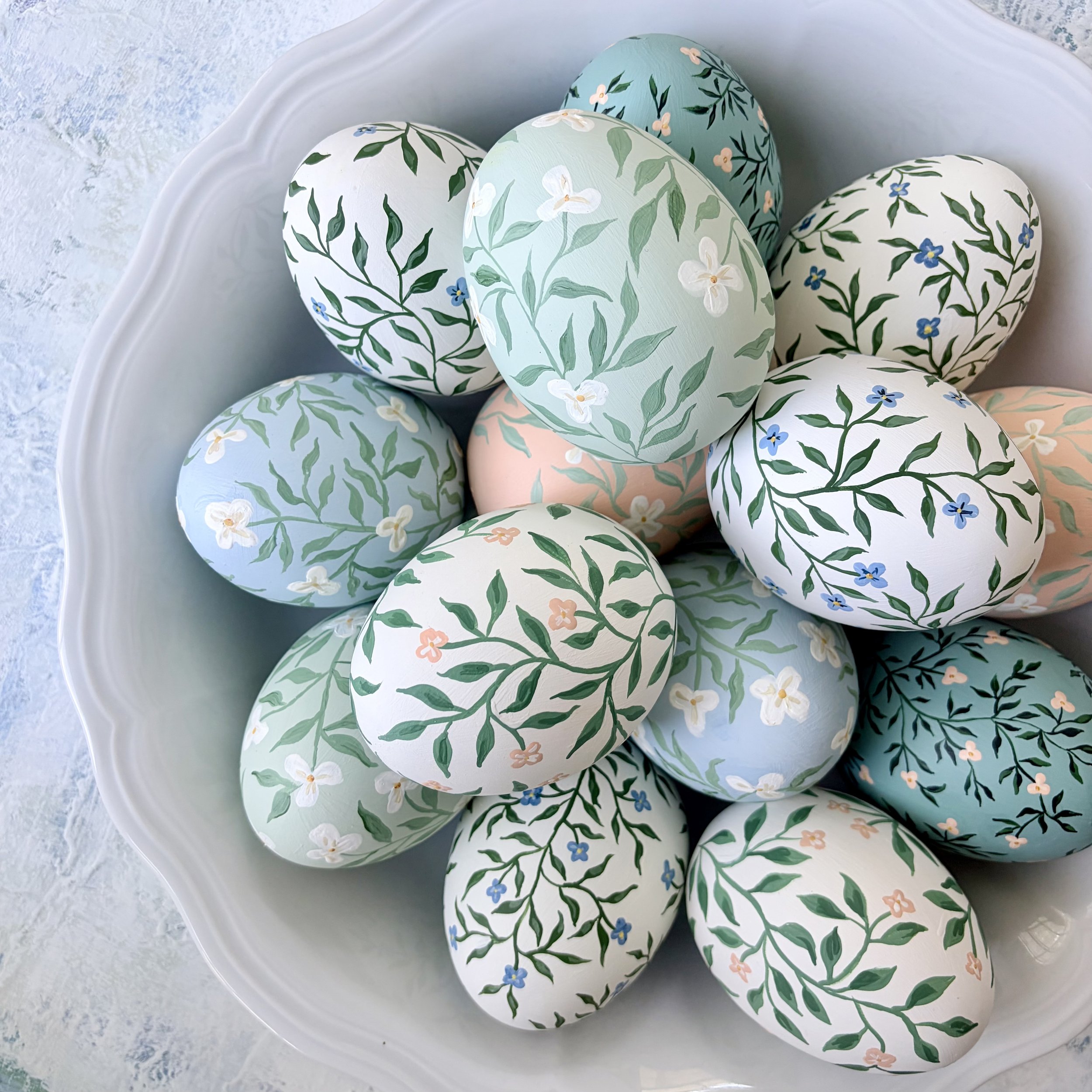 designed to bring a refined, collected feel to your spring decorating, inspired by florals, textiles, and classic interiors. these hand-painted eggs are created to feel timeless rather than seasonal, equally at home on an easter table, styled in a bowl, or displayed year-round as part of a curated vignette.