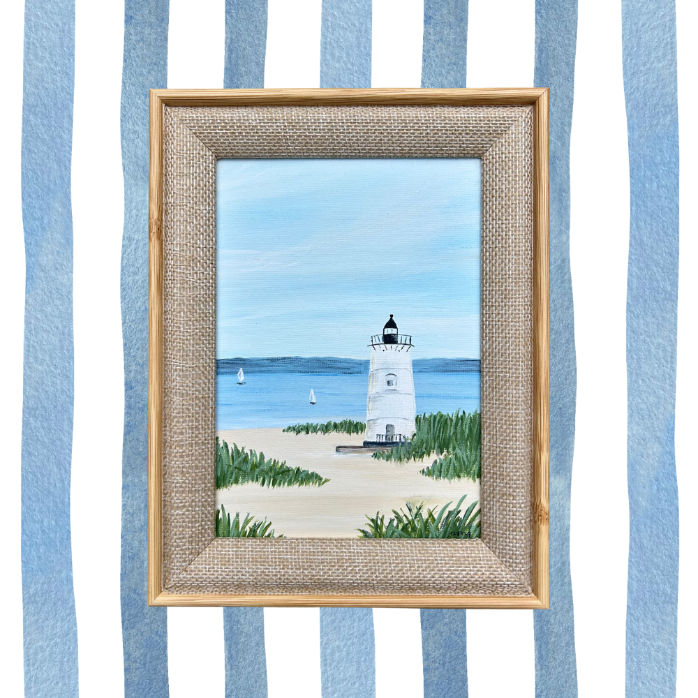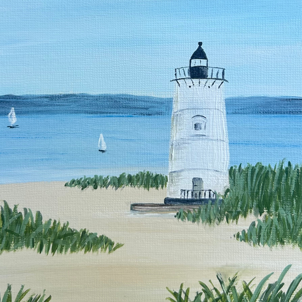 the brant point lighthouse is quintessentially new england, and it’s beautifully captured in this original work.