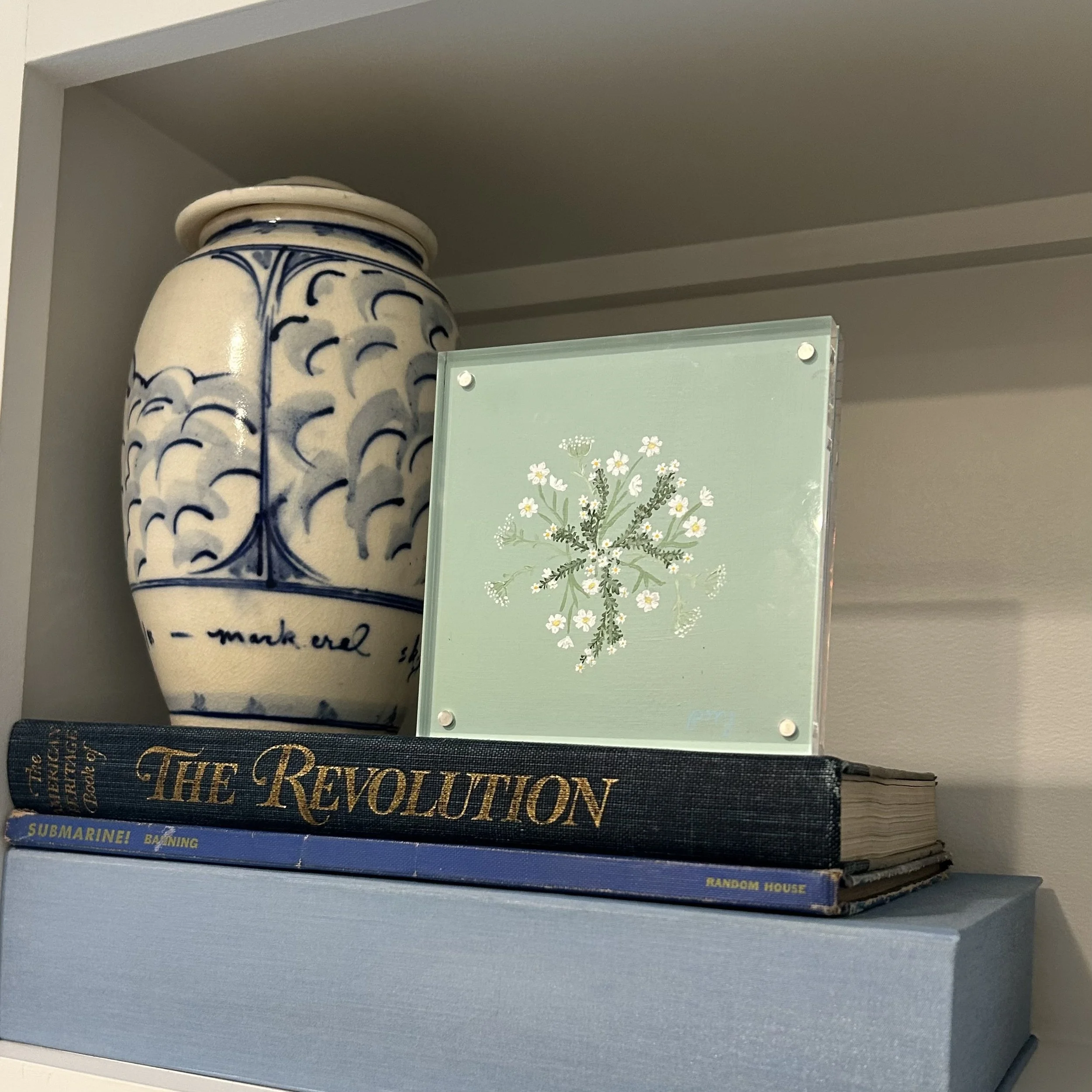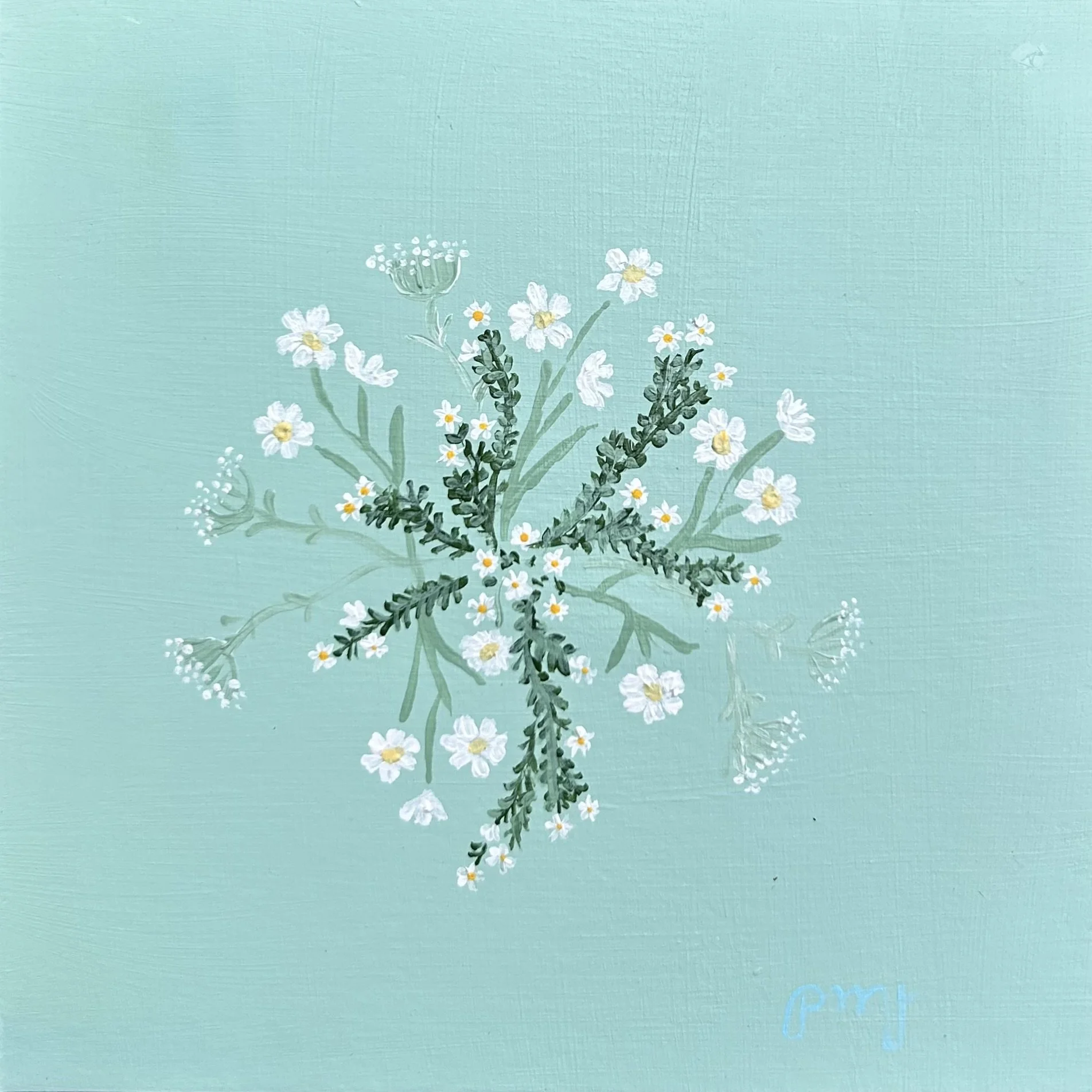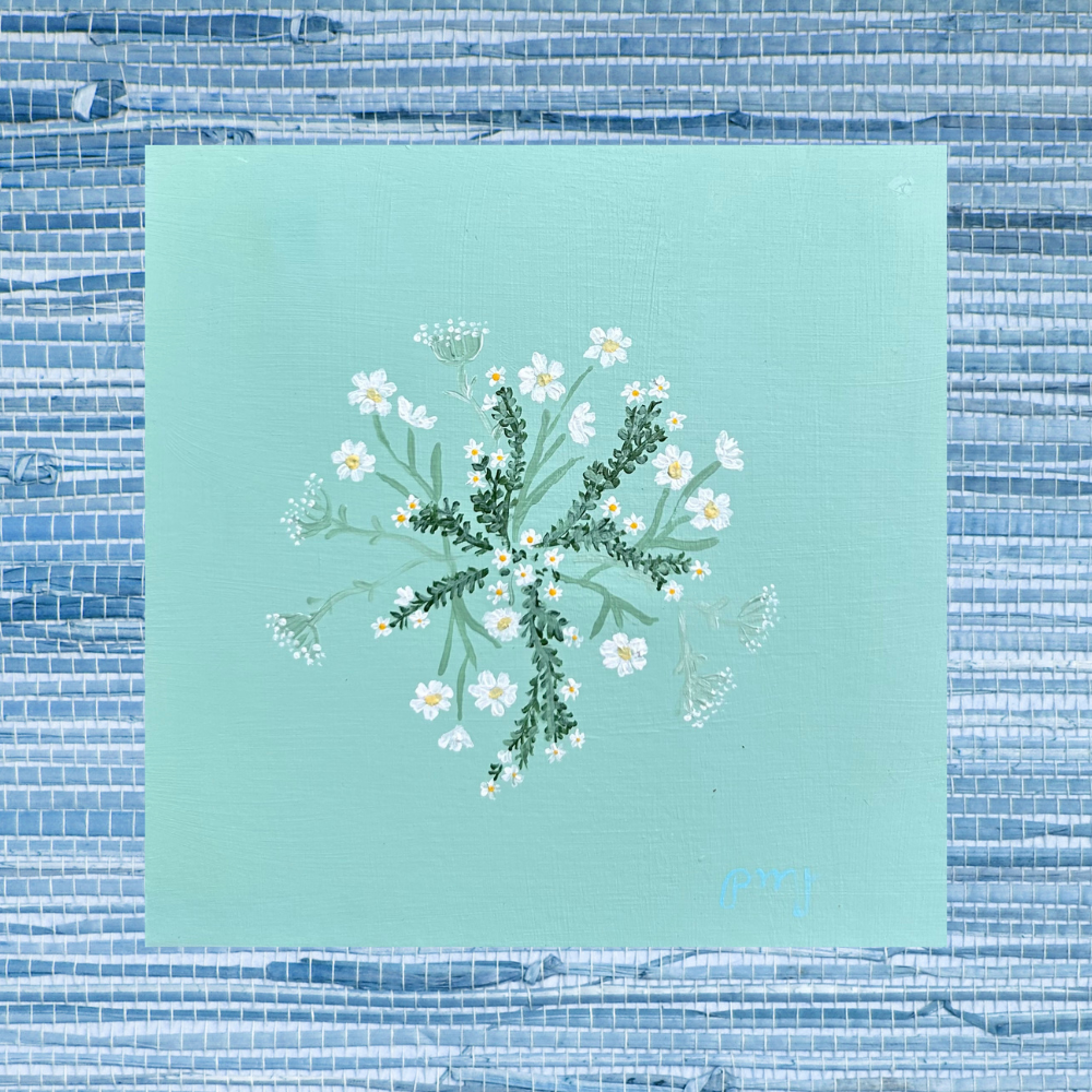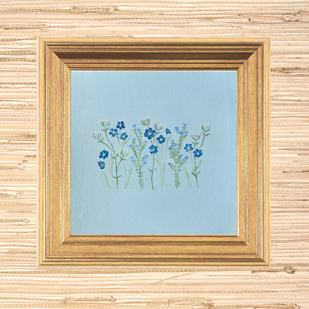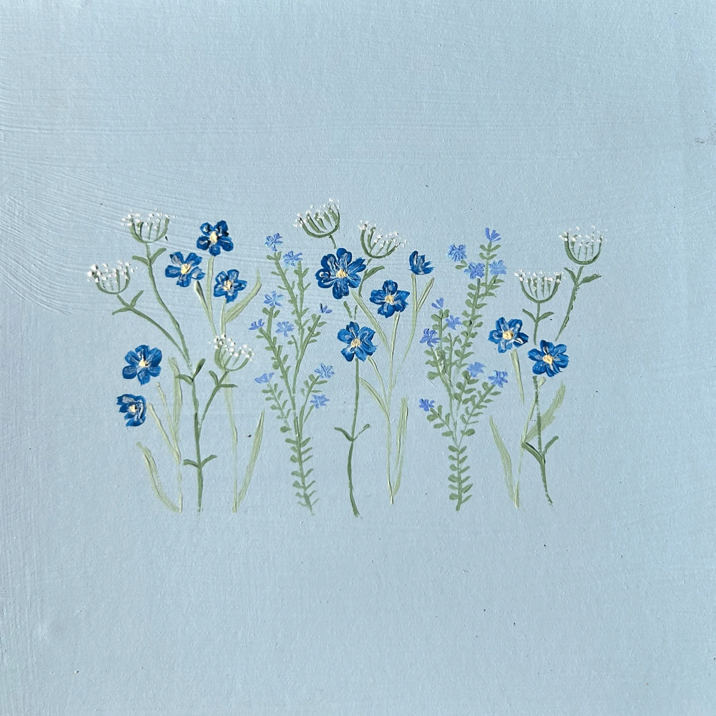 spray of blue wildflowers, acrylic on paper.