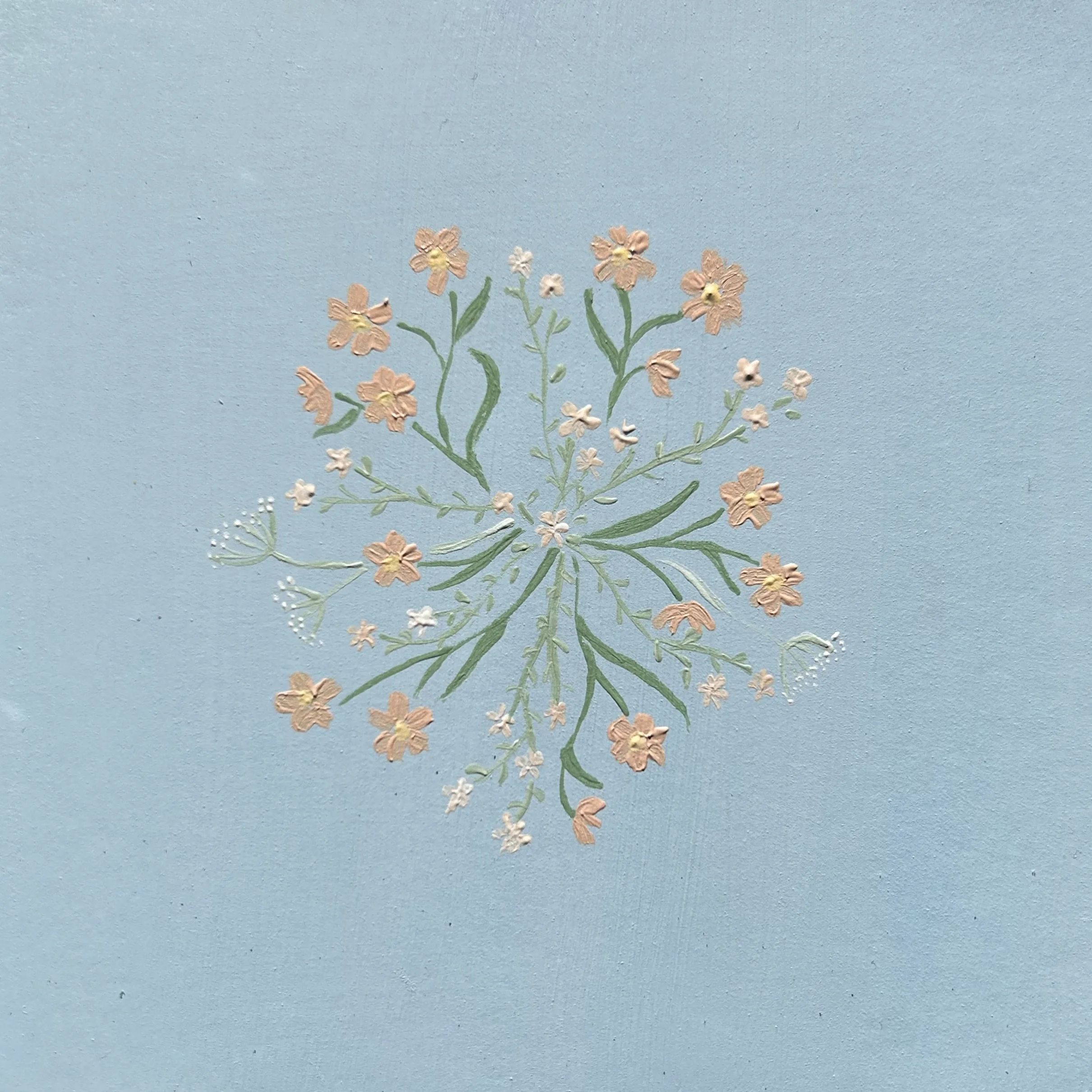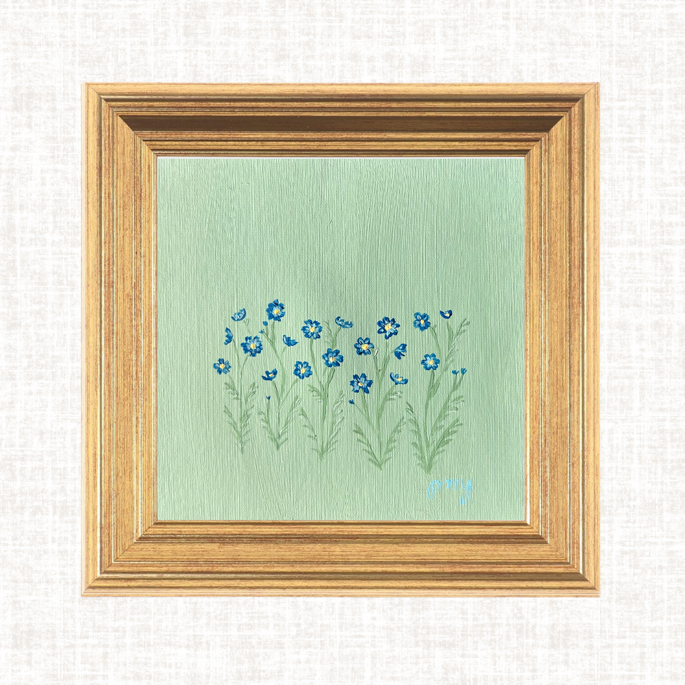 art is approximately 5×5, dimensions including frame are approximately 6.5×6.5.