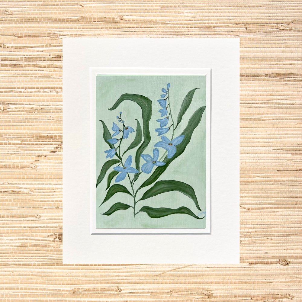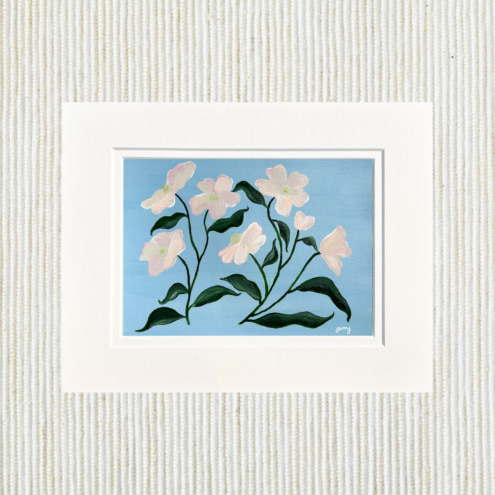 art is 5×7. it is double matted to fit an 8×10 frame.