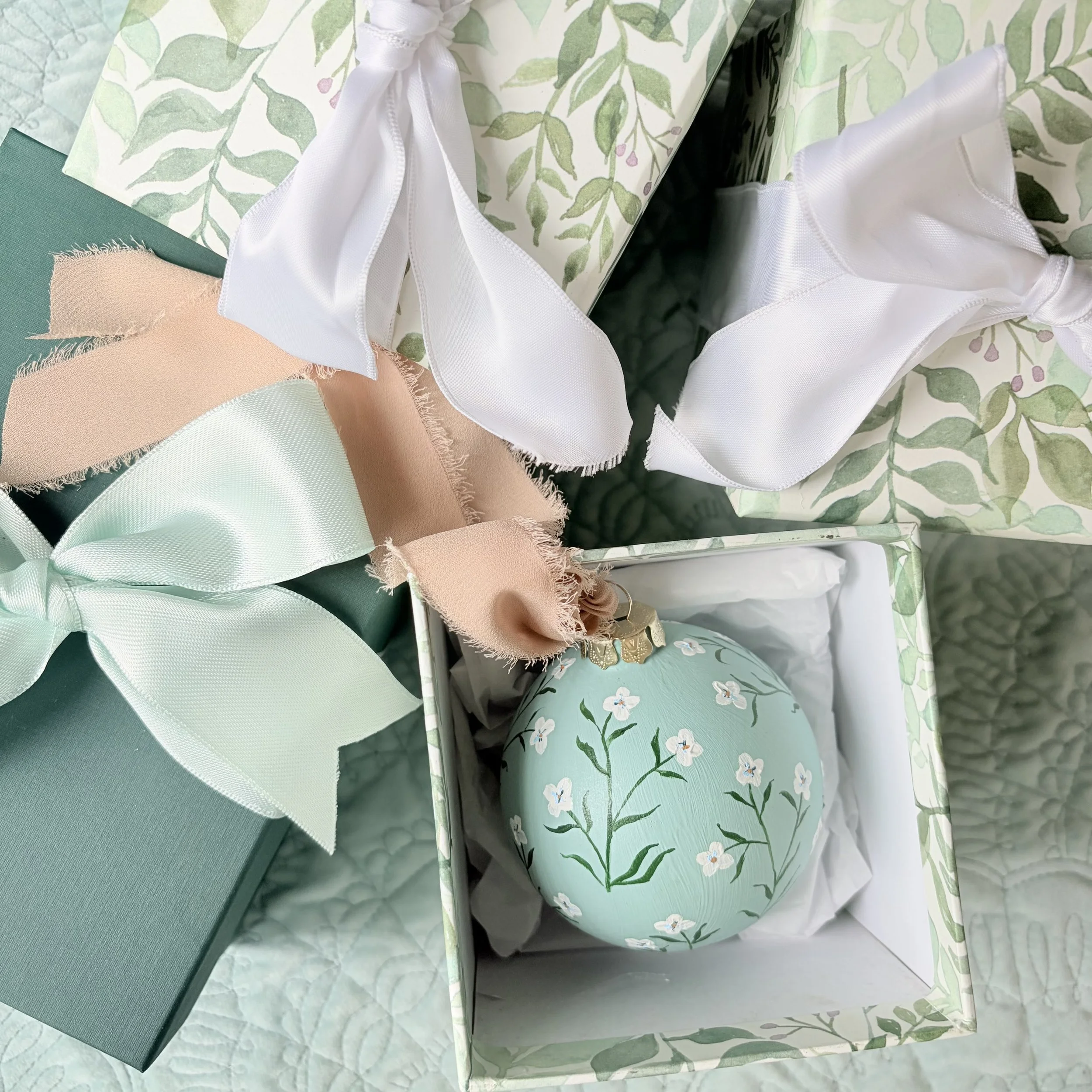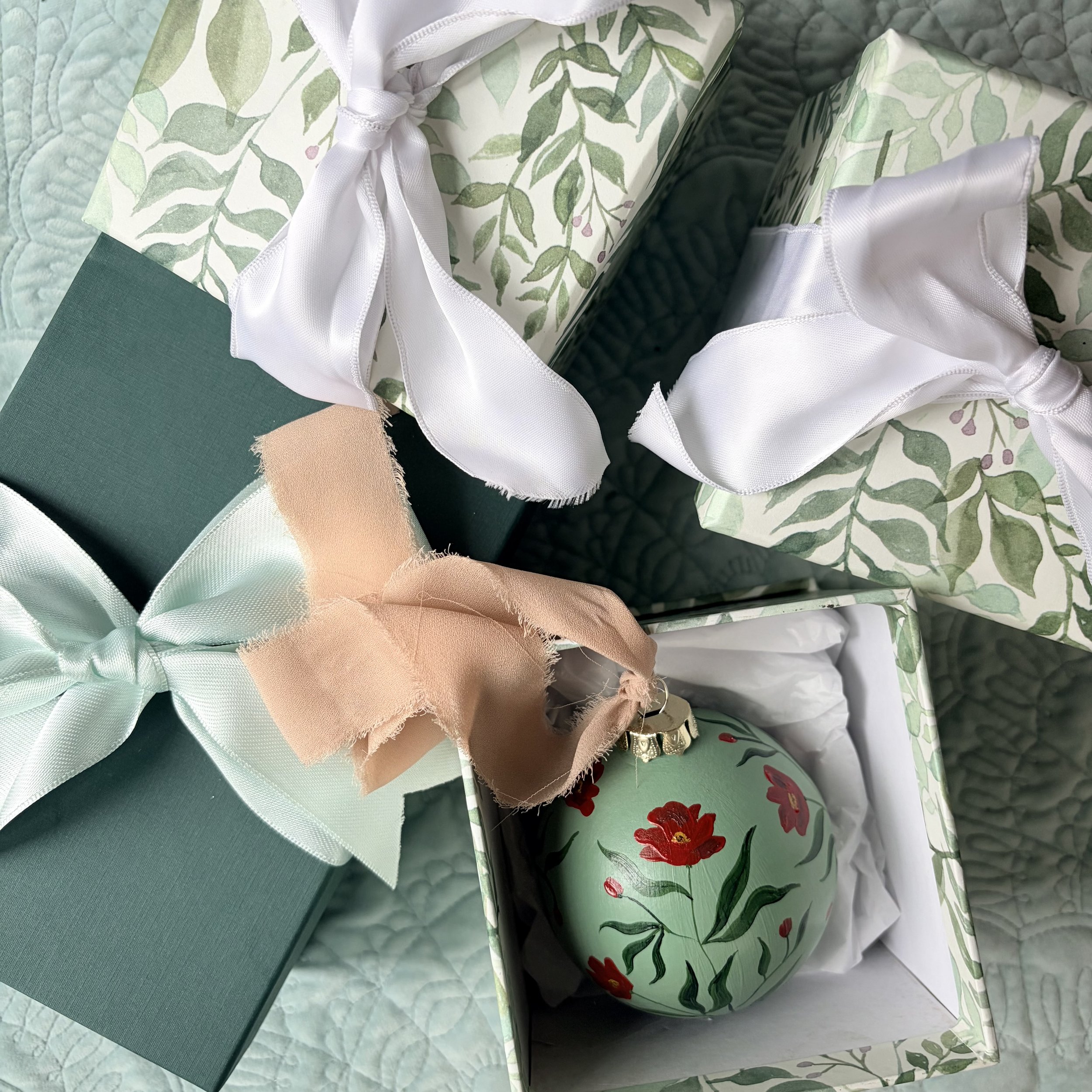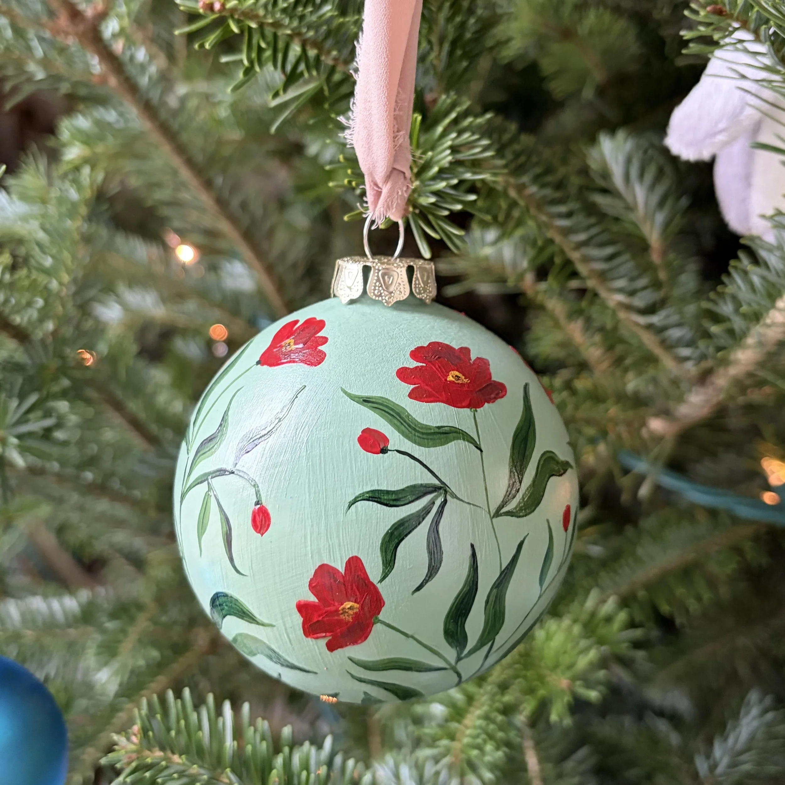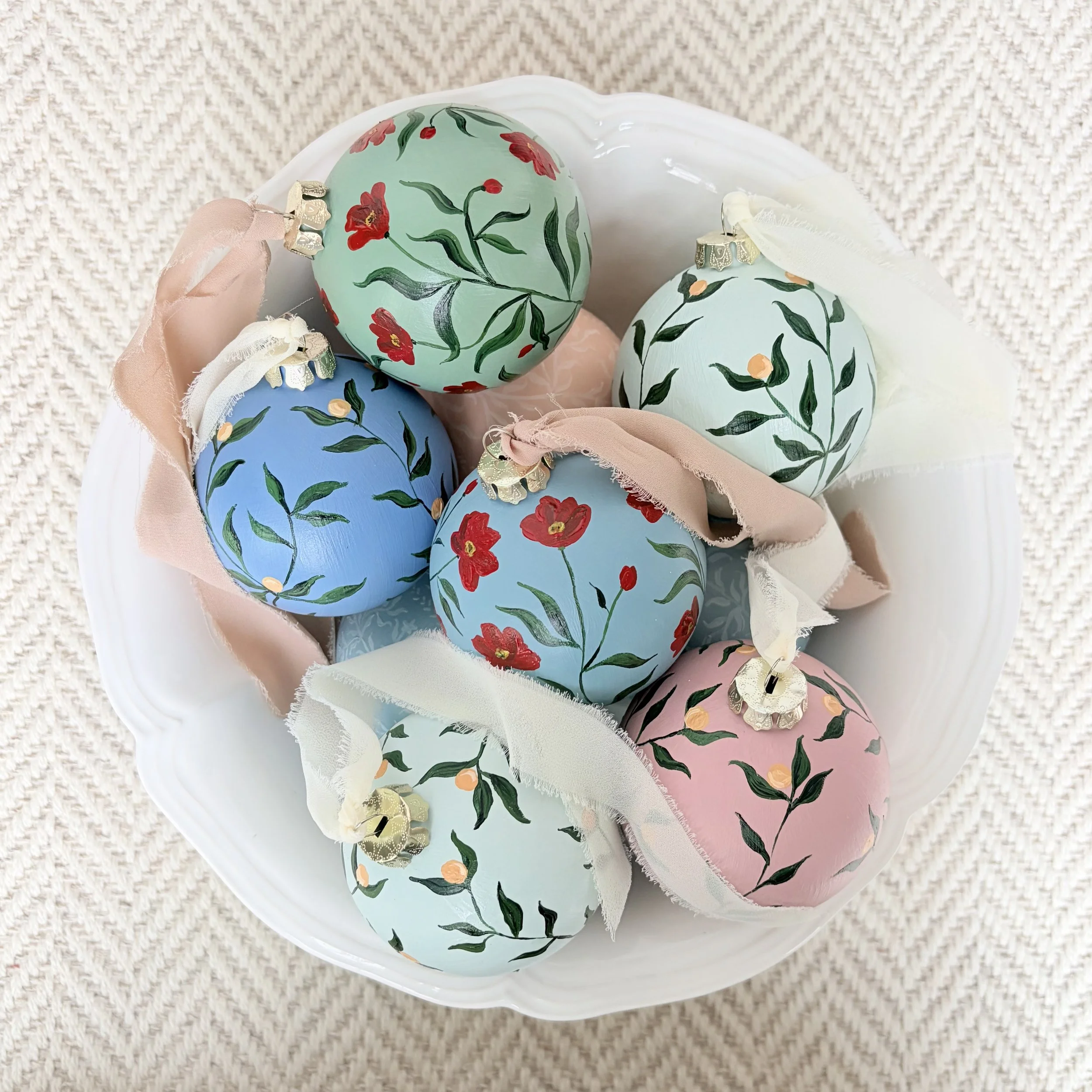 hand-painted ceramic ornaments, sealed in archival varnish.